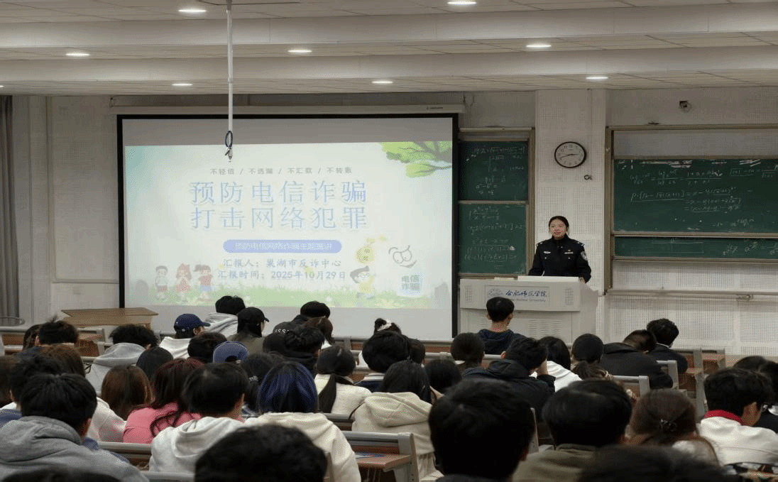 为进一步扎实推进防范电信诈骗工作。10月29日,威廉希尔足球联合巢湖市反诈中心,在校内开展了“预防电信诈骗·打击网络犯罪”主题宣讲活动。此次活动由反诈中心的资深民警主讲,威廉希尔足球滨湖校区各年级学生参加。